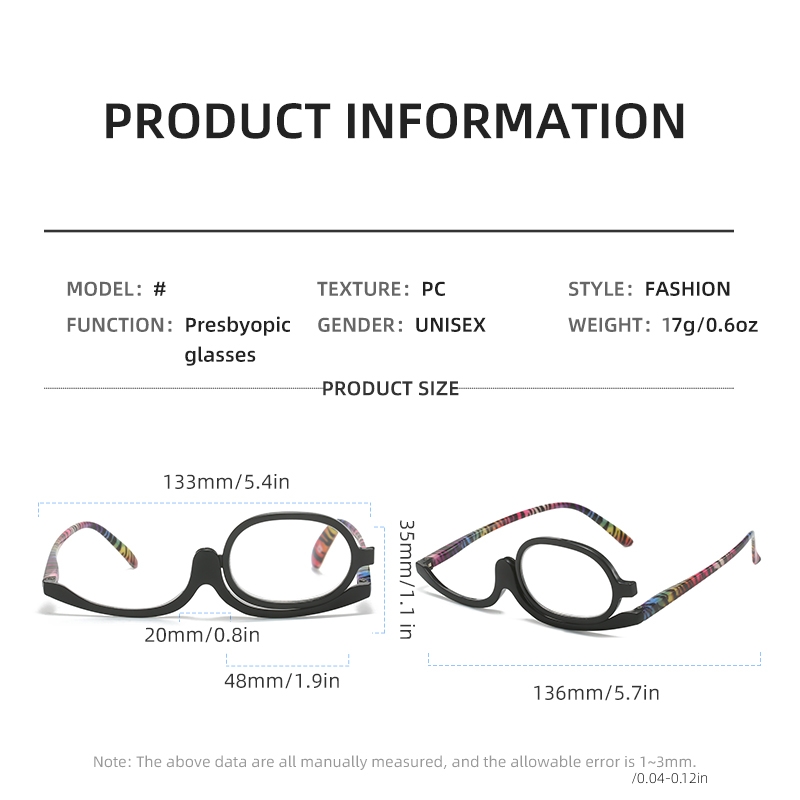 Intelligent zoom reading mirror: The progressive lens has no obvious dividing line between the focal points, smooth and no image jumping, no need to remove the glasses, moving the line of sight from top to bottom, you can see the far and near and the different visual areas of the lens. Things in different distances in the middle.