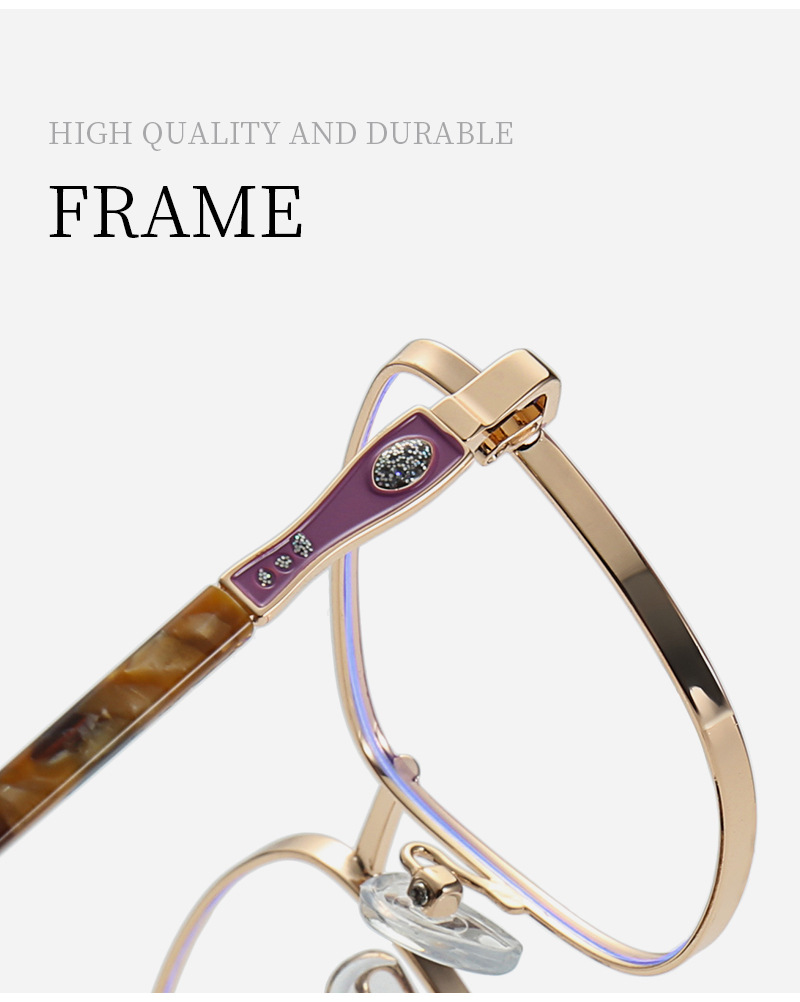 Crafted with sturdy metal hinges, these glasses offer a luxurious feel and exceptional durability. Perfect for daily wear, the hinges ensure a secure and long-lasting fit that complements the overall premium design.