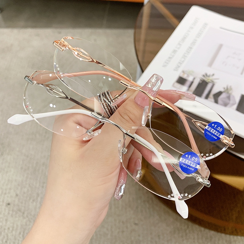 Step into style and confidence with our women's ultra-light edge-cut frameless anti-blue light reading glasses, boasting sturdy components that guarantee long-lasting performance. These glasses are designed to maintain their allure over time, making them an essential accessory to enhance your everyday look. Embrace the lasting impact of glasses that blend both fashion and durability seamlessly.