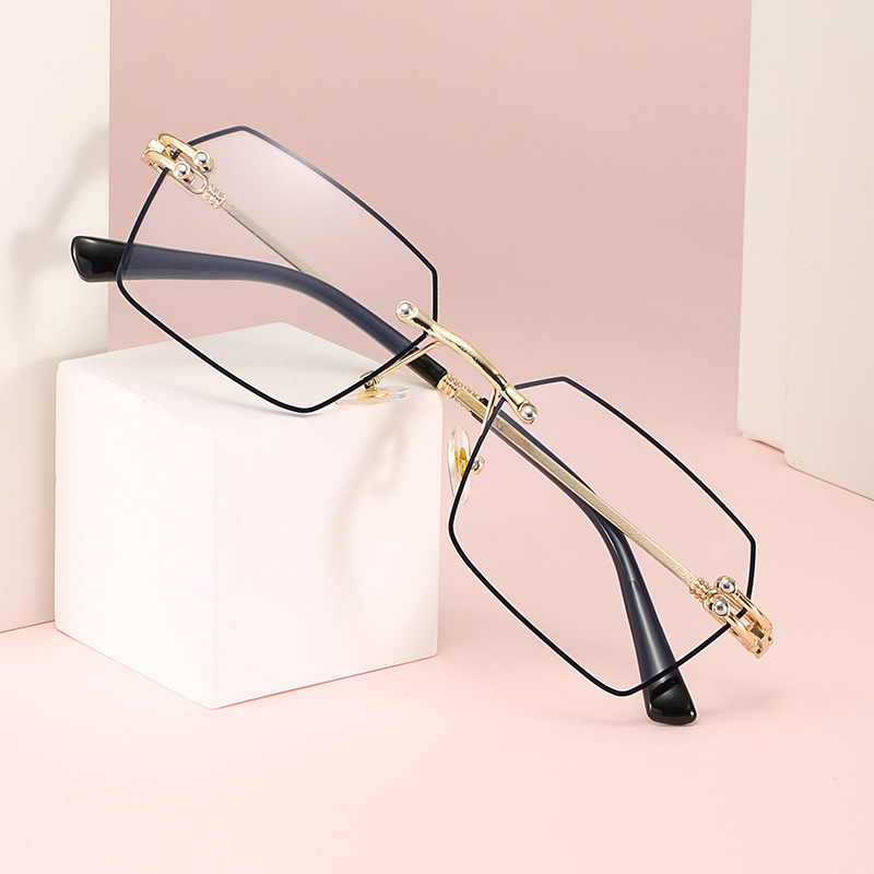 Step into effortless style with our women's stylish edge-cut frameless anti-blue light reading glasses, boasting smooth temple arms that add a touch of elegance to your look. The sleek design enhances the overall aesthetics, making these glasses a true fashion statement. Embrace the allure of our chic design and elevate your style effortlessly.